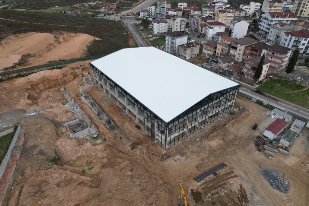 Spor alanında yaptığı yatırım ve atılımlarla ilçenin spor kenti kimliği kazanmasını sağlayan Çayırova Belediye Başkanı Bünyamin Çiftçi’nin Çayırova’ya kazandırdığı projelerden olan Kapalı Spor Salonu ve Sporcu Fabrikası’nda çalışmalar son sürat devam ediyor. Tamamlandığında ilçenin spor altyapısına sınıf atlatacak proje kapsamında inşa edilen yeni spor salonunun tribünleri şekillendi. Çatı makaslarının konulmasının ardından çalışmaların devam ettiği kapalı spor salonunda çatı panel montajı da tamamlanmış oldu. Ekipler, salon çevresine konulacak paneller için çelik imalatına devam ediyor. Mevcut çalışmanın tamamlanmasının ardından salonun yan duvarları için dış cephe montajına başlanacak. EN KISA SÜREDE TAMAMLANACAKGeleceğin sporcularının Çayırova’dan yetişmesine imkan sağlayacak Kapalı Spor Salonu ve Sporcu Fabrikası projesi tamamlandığında 9 branşta mücadele eden tüm sporcuların aynı anda antrenman yapabilmesine olanak sağlayacak. Sporcu fabrikasında yetişecek ve burada kendini geliştirecek çocukların, ilerleyen yıllarda milli formayla Ay-Yıldızlı bayrağımızı temsil etmesi amaçlanıyor. Bittiğinde Çayırova’nın ikinci spor salonu olacak tesis, sadece çocuklara ve gençlere değil, 7’den 70’e tüm Çayırovalı vatandaşların da sporla iç içe olmasına imkan verecek. Bununla beraber yeni spor salonu Çayırova Belediyesi basketbol takımının da yeni sahası olacak. Spor salonu ve sporcu fabrikasının en kısa sürede tamamlanıp, Çayırovalıların hizmetine açılması amaçlanıyor.