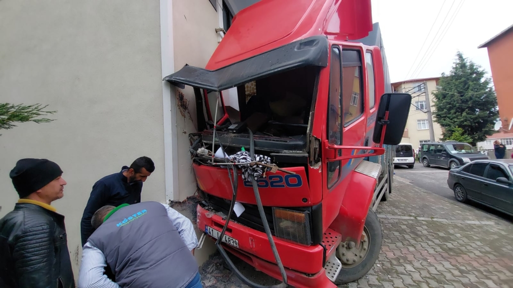 Çayırova ilçesinde kendiliğinden harekete geçen kamyon iki otomobile çarptıktan sonra bir eve çarparak durabildi.