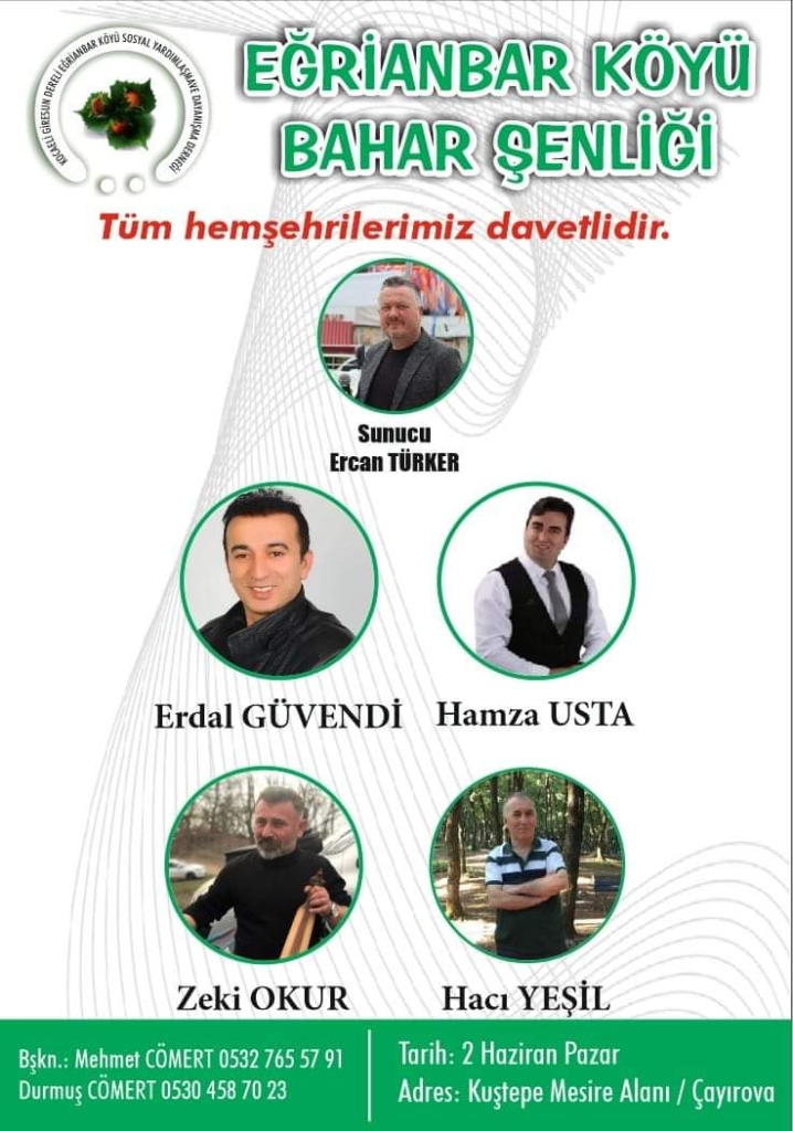 Kocaeli’nin Gebze ilçesinde faaliyet gösteren Giresun Dereli ilçesi Eğriambar Köyü Derneği, bu yılki bahar şenliğinde tüm hemşehrilerini bir araya getiriyor.