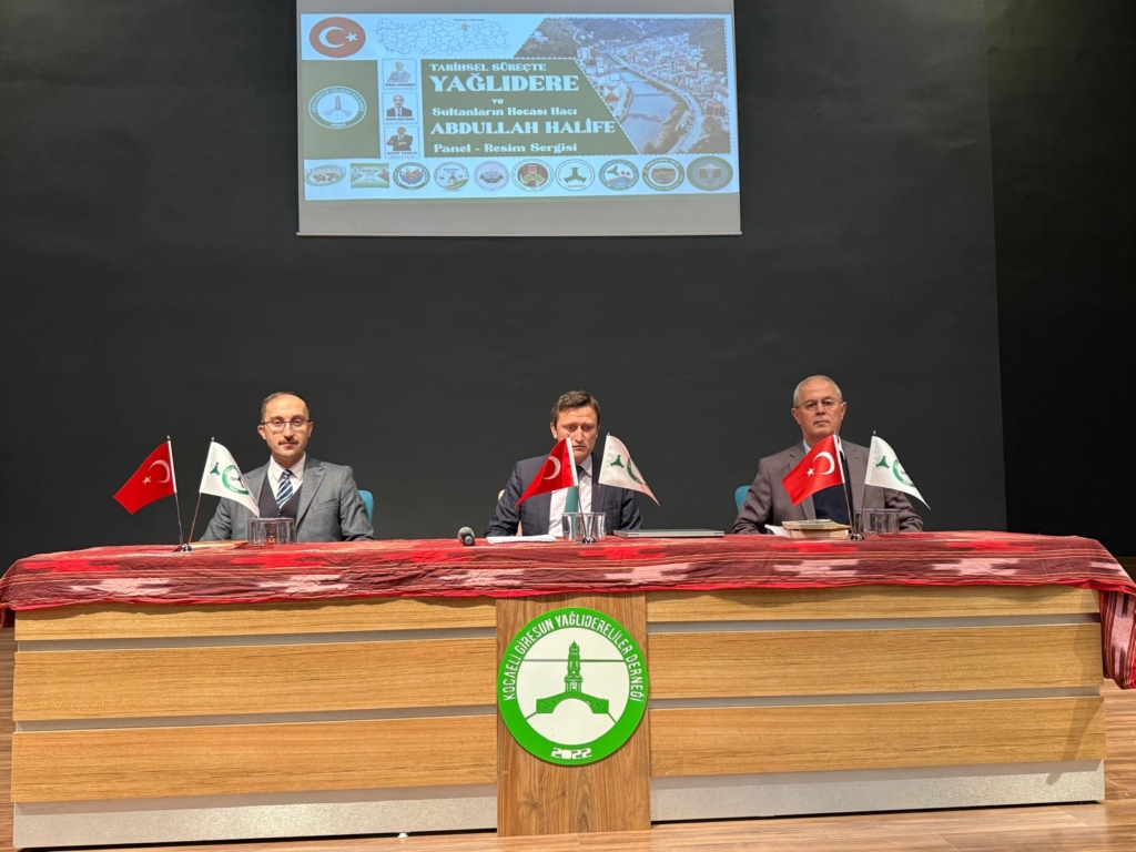 Tarihçiler ve Araştırmacılar SahnedeydiPanelin moderatörlüğünü tarihçi ve araştırmacı Recep Kankal üstlendi. Açılış konuşmasında programın genel çerçevesini çizen Kankal, Hacı Abdullah Halife’nin tarihî önemine ve Yağlıdere’nin kültürel mirasına dair önemli bilgiler paylaştı.Panelin ilk konuşmacısı araştırmacı gazeteci İsmail Kahraman oldu. Kahraman, Hacı Abdullah Halife’nin türbesinin bulunduğu Tekke Köyü’nün önemine ve Yağlıdere’nin Hicaz yolu ile olan tarihî bağlantısına dair kapsamlı bir sunum yaptı.Ardından söz alan araştırmacı yazar Harun Bostancı, panelde Hacı Abdullah Halife’nin hayatı, ilmi yönü ve bıraktığı manevi miras üzerine kapsamlı bir sunum gerçekleştirdi. Konuşmasında Hacı Abdullah Halife’nin, yaşadığı dönemde önemli bir âlim ve kanaat önderi olduğunu vurgulayan Bostancı, onun ilmi derinliği ve halk üzerindeki etkisine dikkat çekti.Bostancı’nın anlatımına göre Hacı Abdullah Halife, özellikle tasavvuf alanındaki bilgisi ve insanlara rehberlik etme özelliğiyle öne çıktı. Onun sohbetleri, insanlara doğru yolu göstermesi ve manevi dünyalarına katkı sunması nedeniyle büyük ilgi gördü. Harun Bostancı, Hacı Abdullah Halife’nin en önemli miraslarından birinin, bugün Tekke Köyü’nde bulunan türbesi olduğunu belirtti. Bu türbenin, sadece bir ziyaret noktası olmanın ötesinde, bölgenin manevi kimliğinin bir parçası haline geldiğini söyledi. Bostancı, Hacı Abdullah Halife’nin yalnızca bir din âlimi değil, aynı zamanda yaşadığı toplumun manevi bir önderi olduğunu vurguladı. Onun ilmi birikimi, insanlara verdiği öğütler ve tasavvufi sohbetleri sayesinde geniş bir kitle tarafından benimsendiğini ve öğretilerinin günümüze kadar ulaştığını belirtti.Hacı Abdullah Halife’nin en büyük özelliklerinden birinin, bilgiyle irfanı birleştiren bir anlayışa sahip olması olduğunu ifade eden Bostancı, onun yolundan giden birçok talebenin de benzer şekilde halkın manevi gelişimine katkı sunduğunu söyledi.Siyaset ve Yerel Yönetimden Yoğun İlgiPanele milletvekilleri ve belediye başkanları da yoğun ilgi gösterdi. Etkinliğe katılan siyasiler, selamlama konuşmalarında tarihî ve kültürel etkinliklerin önemine vurgu yaparak, bu tür organizasyonların desteklenmesi gerektiğini belirttiler.Program, panelistlere teşekkür edilmesi ve plaket takdimi akabinde toplu fotoğraf çekimi ile sona erdi. Katılımcılar, bu anlamlı etkinlikte önemli bilgiler edinmenin yanı sıra, tarihi ve kültürel mirasa sahip çıkmanın önemini bir kez daha hatırladılar.Giresun’un Kültürel Hafızasına KatkıKocaeli Giresun Yağlıdereliler Derneği, bu etkinlikle yalnızca Giresun’un tarihine ışık tutmakla kalmadı, aynı zamanda kültürel mirasın gelecek nesillere aktarılması adına önemli bir adım attı. Dernek başkanı, bu tür etkinliklerin devam edeceğini ve Yağlıdere’nin tarihî değerlerini daha geniş kitlelere tanıtmayı sürdüreceklerini belirtti.Bu panel, Giresun ve Osmanlı tarihi açısından büyük önem taşıyan bir ismi yeniden hatırlatırken, bölgesel tarih çalışmalarına da yeni bir soluk getirdi.